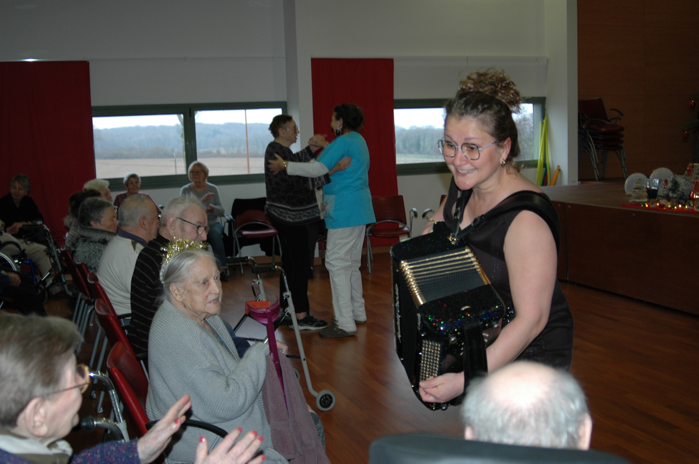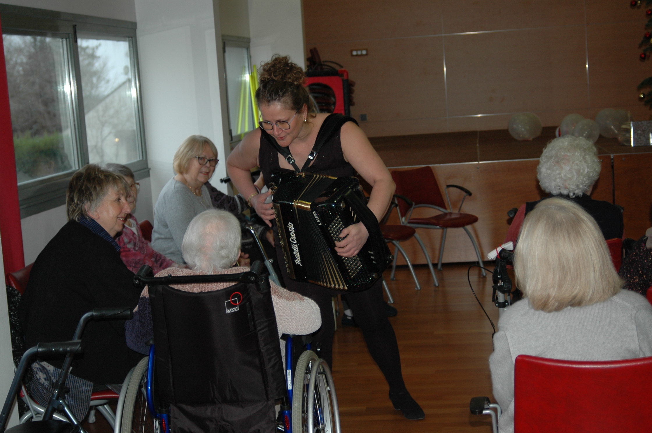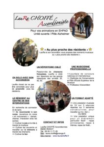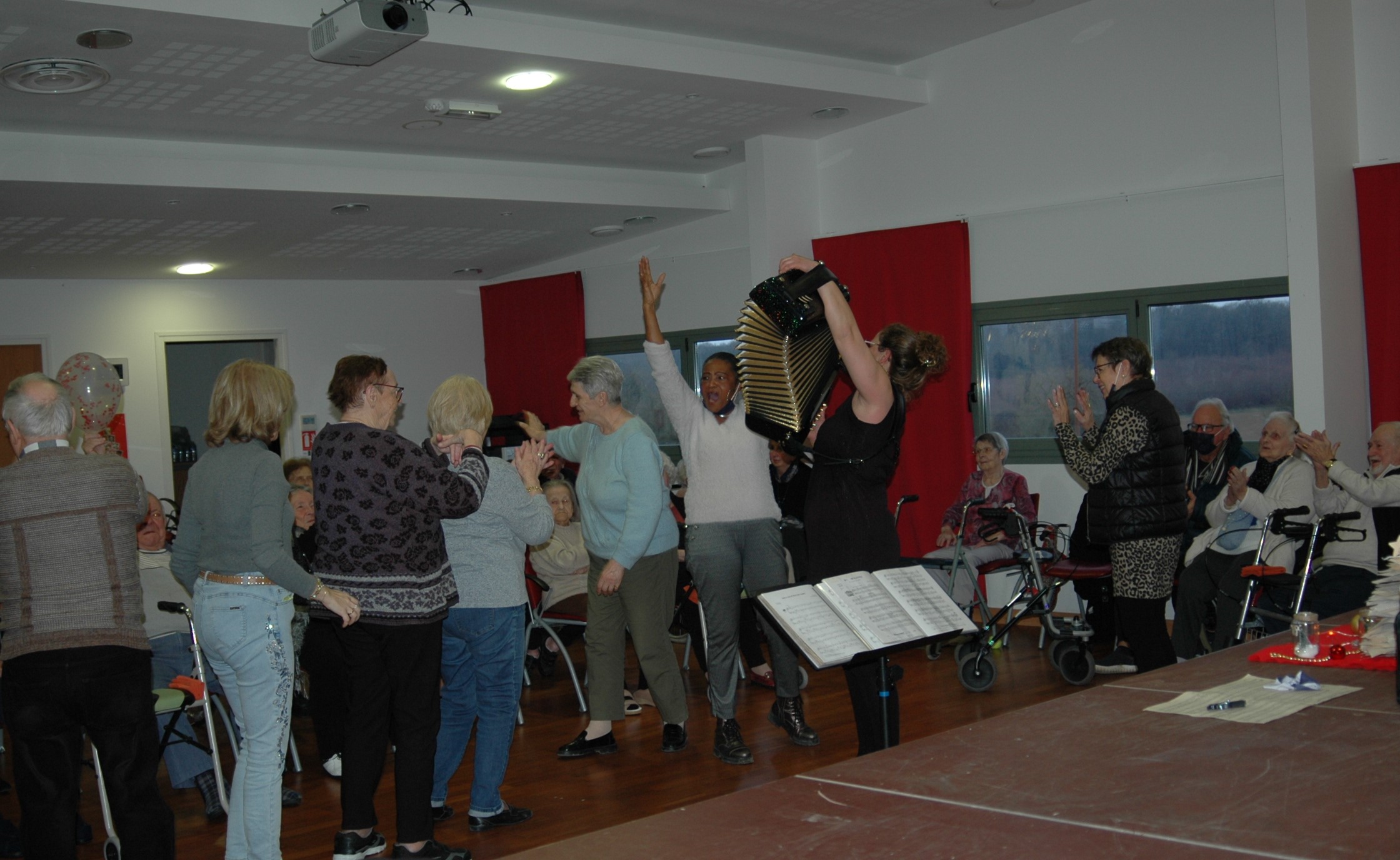 … Musique LIVE sans sonorisation => pour plus d’intimité avec les résidents et permettre les déplacements dans la salle